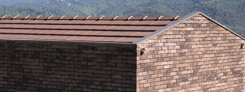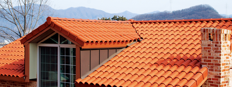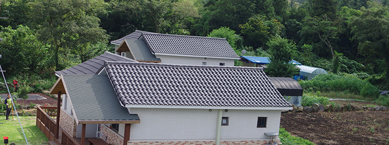 - 디지털 인쇄기술을 업계최초로 기와생산에 도입하여, 기존에는 상상할 수 없었던 어떠한 표면효과도 구현 가능. 이 기술로 고품질의 세라믹재질로 암석, 목재, 금속, 시멘트 등으로 건축물의 지붕을 자유자재로 표현 가능.